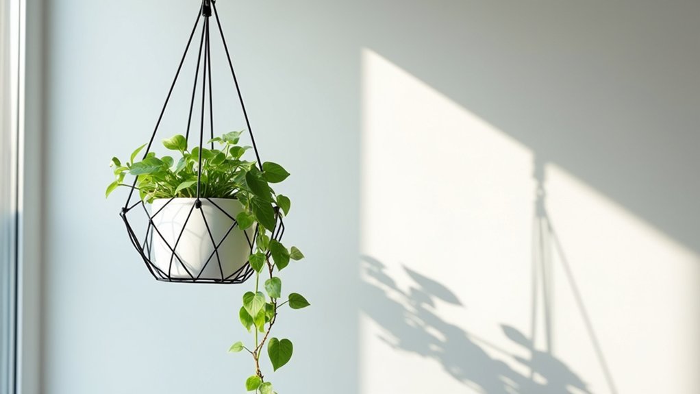 Wire plant hangers embody modern simplicity with their clean lines and geometric shapes, offering an understated way to display indoor plants.