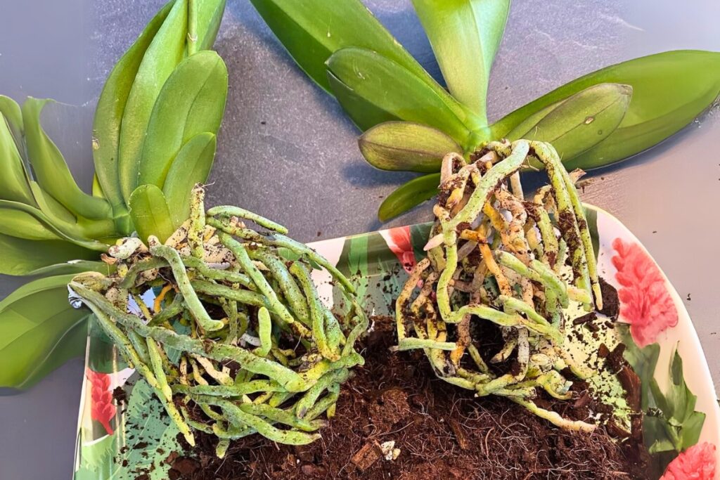 Proper examination of your orchid’s roots marks one of the most essential steps in successful repotting. After removing the plant, you’ll notice both healthy and unhealthy roots. Healthy roots appear firm and light green when dry, turning bright green when wet.
