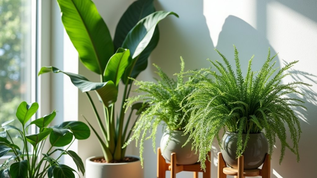 Clean leaves monthly with a damp cloth to remove dust and allow proper photosynthesis, paying special attention to textured surfaces where debris can accumulate. Monitor each plant’s individual growth patterns and adjust their positions seasonally to accommodate changing light conditions and maintain the desired visual balance.