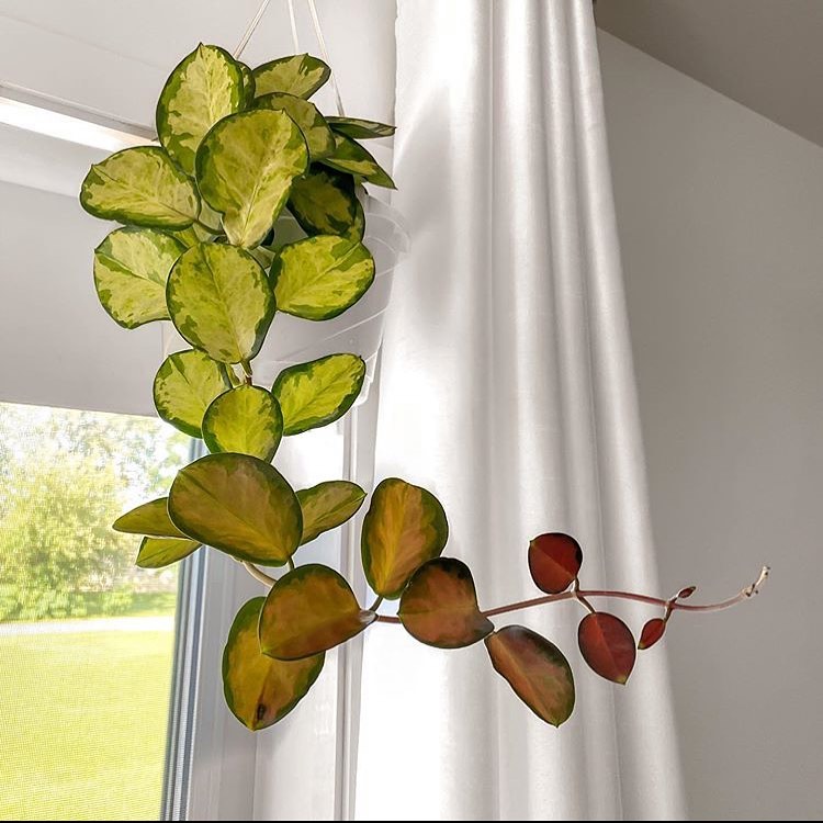 Hoya gracilis is a breathtaking trailing plant that thrives in hanging pots, showcasing elongated, glossy leaves with subtle variegation. Its cascading vines create a lush, flowing display, complemented by delicate, star-shaped flowers that bloom in clusters and emit a sweet, caramel-like fragrance. This effortless beauty adds a touch of elegance to any indoor space, making it a standout choice for suspended gardens.